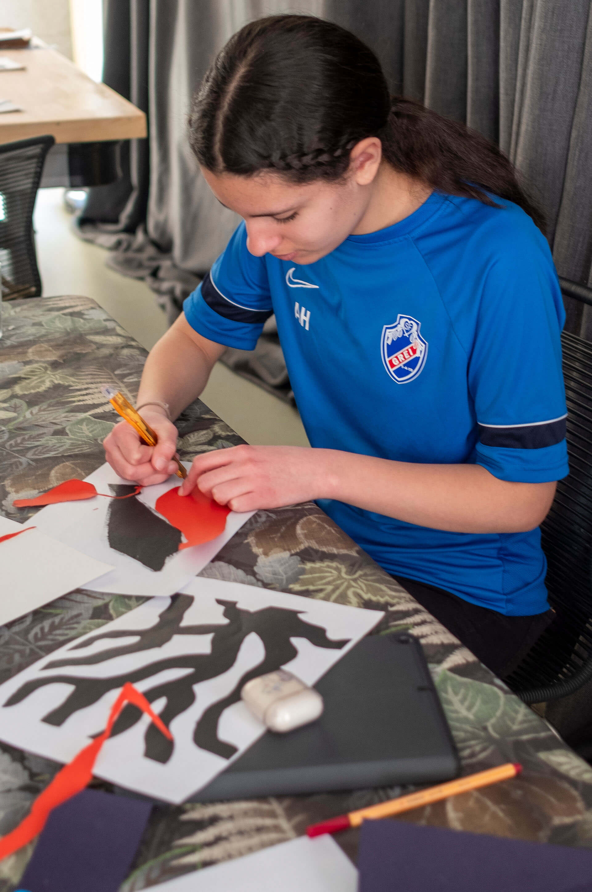 A facade painting for the grendehus (community house) at Sletteløkka telling a story of the area through the eyes of 39 youths.The project was a collaboration with the school of Rødtvet and Apaløkka where 39 youths aged 11–16 participated in a workshop to design the facade of the new Community House in Sletteløkka. They explored personal stories, narratives, experiences, and interpretations about their own neighbourhood and how they could express this through symbols. Translating ideas and stories into symbols allows one to tell the story of a place in a completely different way.