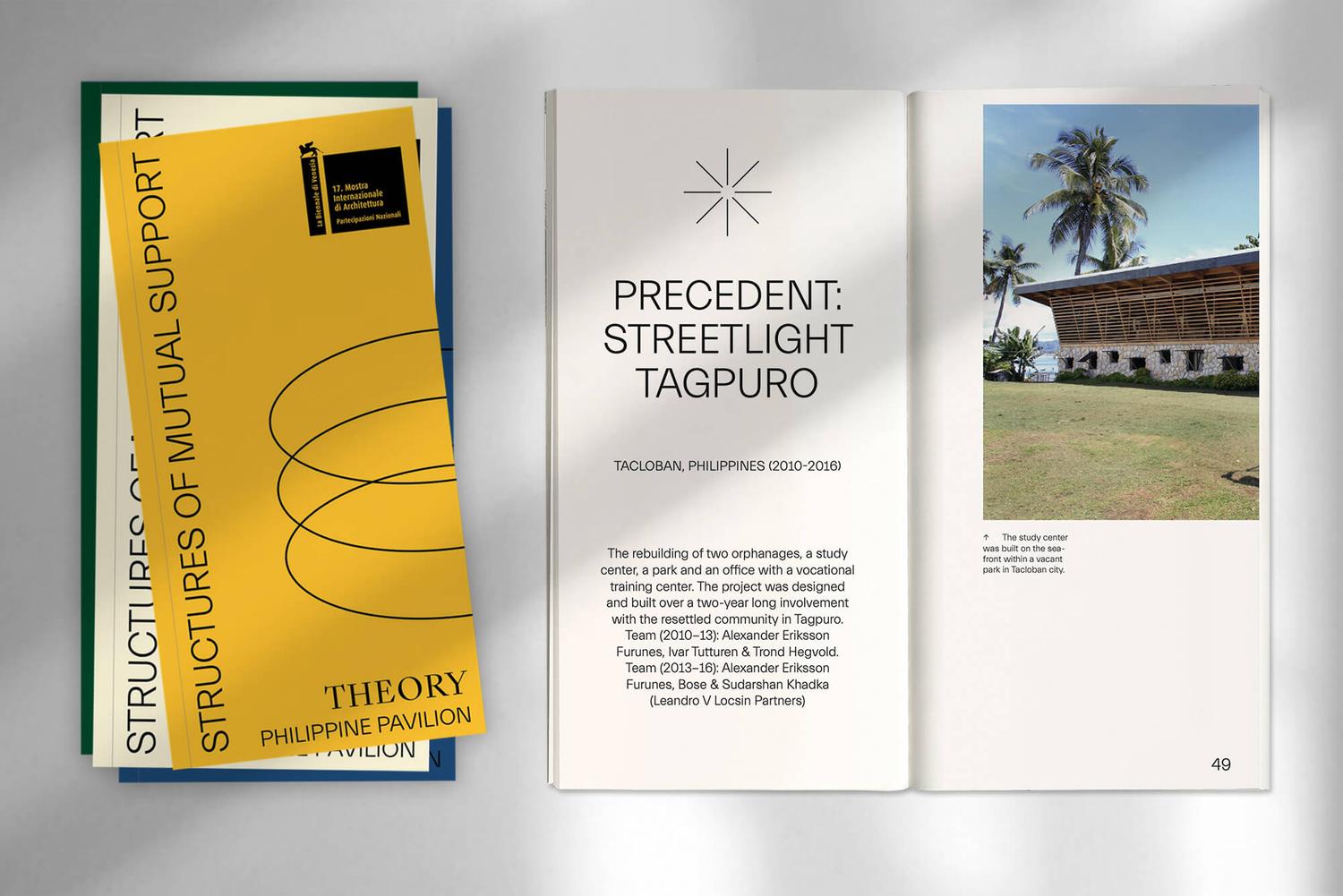 A publication accompanying the exhibition Structures of Mutual Support, as the Philipåpine Pavilion at the Venice Biennale The publication consists of five booklets—categorized as Concept, Theory, Framework, Process, and Beyond—each telling a story of Mutual Support from a different perspective. Concept is an account of the curatorial concept behind the exhibition. Theory explores what traditions of mutual support have been and are today. This booklet also compiles research into 21 various traditions of mutual support around the world, written in dialogue with contacts within each culture and practice. Framework explores how these traditions can inform collaborative practice, which is put into action and documented in the Process booklet. Beyond was written during the COVID pandemic, exploring the importance and role of mutual support in the future.